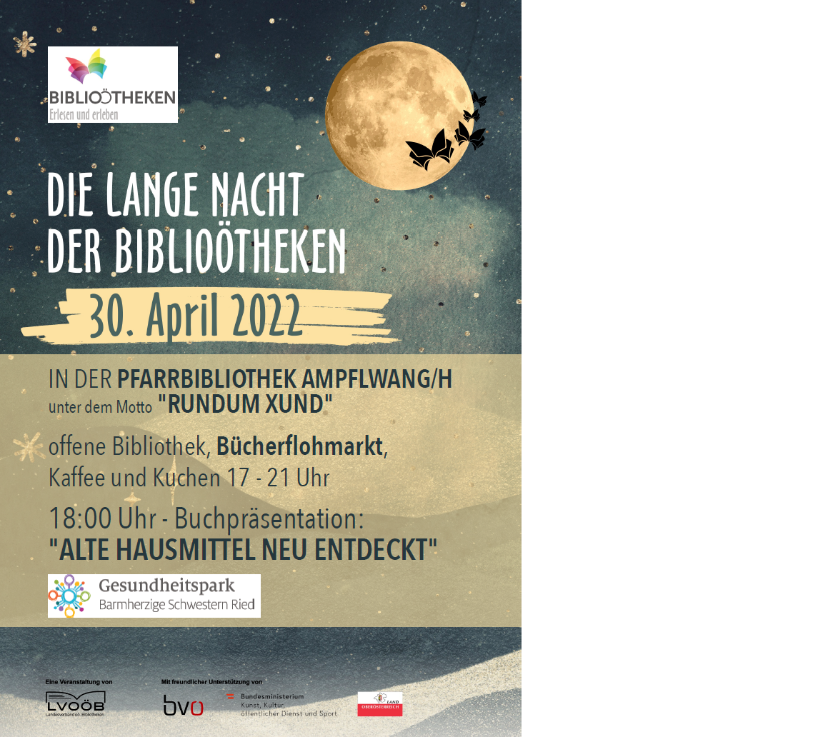 lange nacht der bibliotheken, biblioötheken, Pfarrbibliothek, Ampflwang, Gesundheitspark Ried, Alte Hausmittel neu entdeckt, bibliothek, hausmittel, buch, bücher