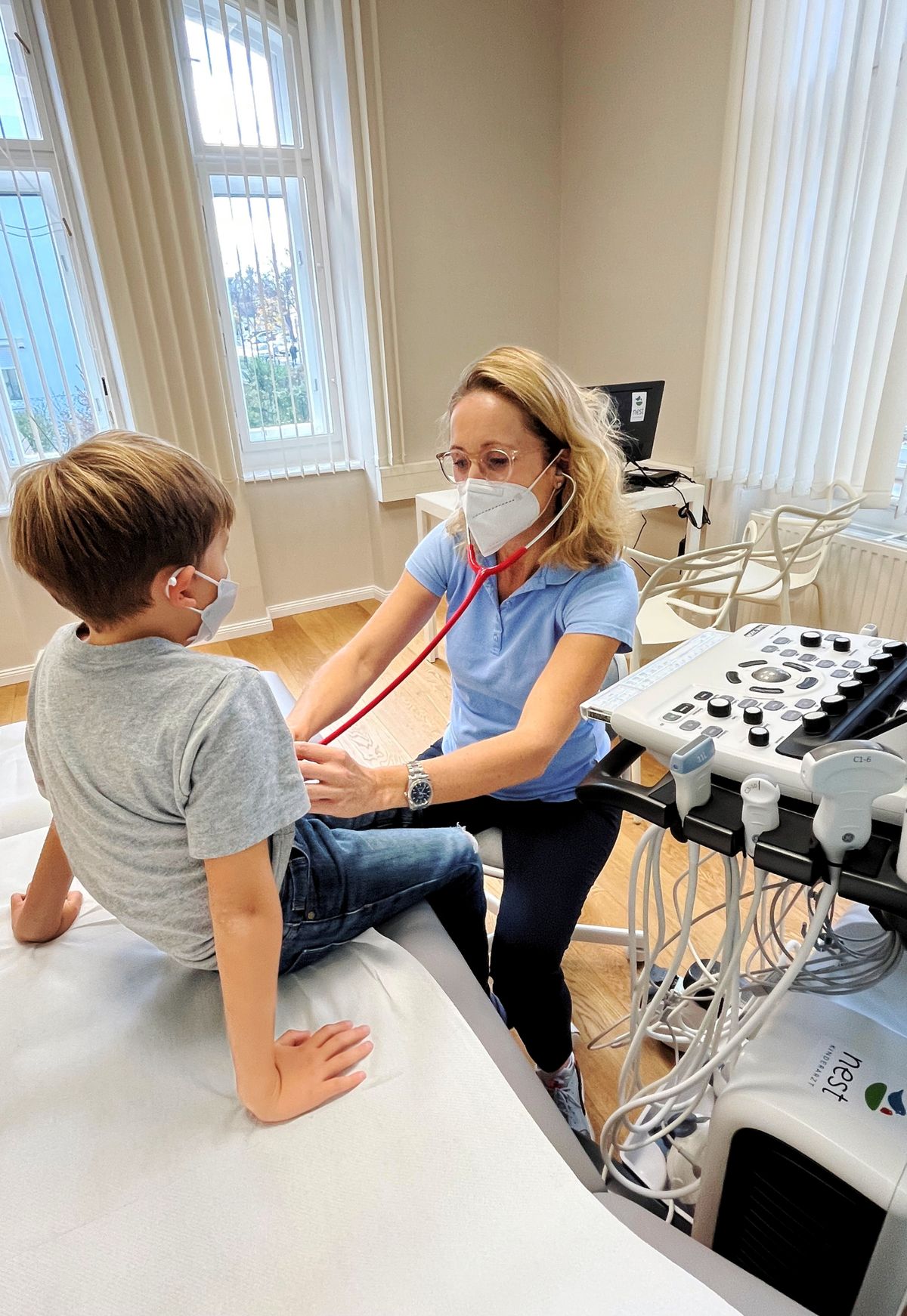 Kinderärztin OÄ Dr. Verena Herrmanns bei der Behandlung eines jungen Patienten
