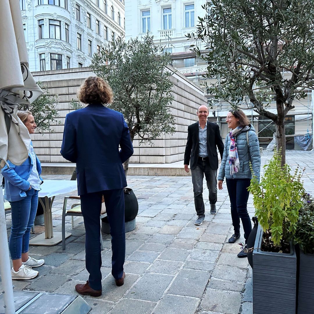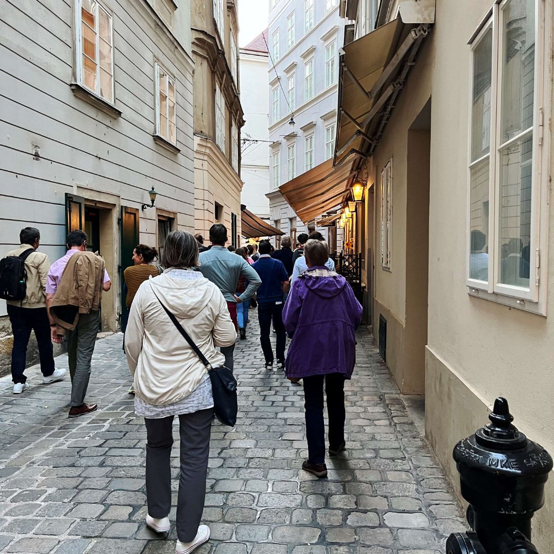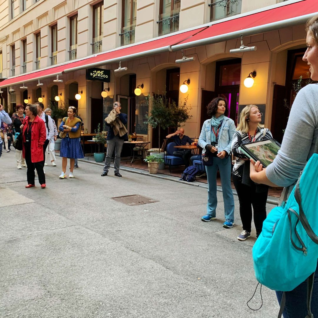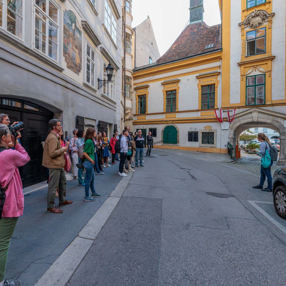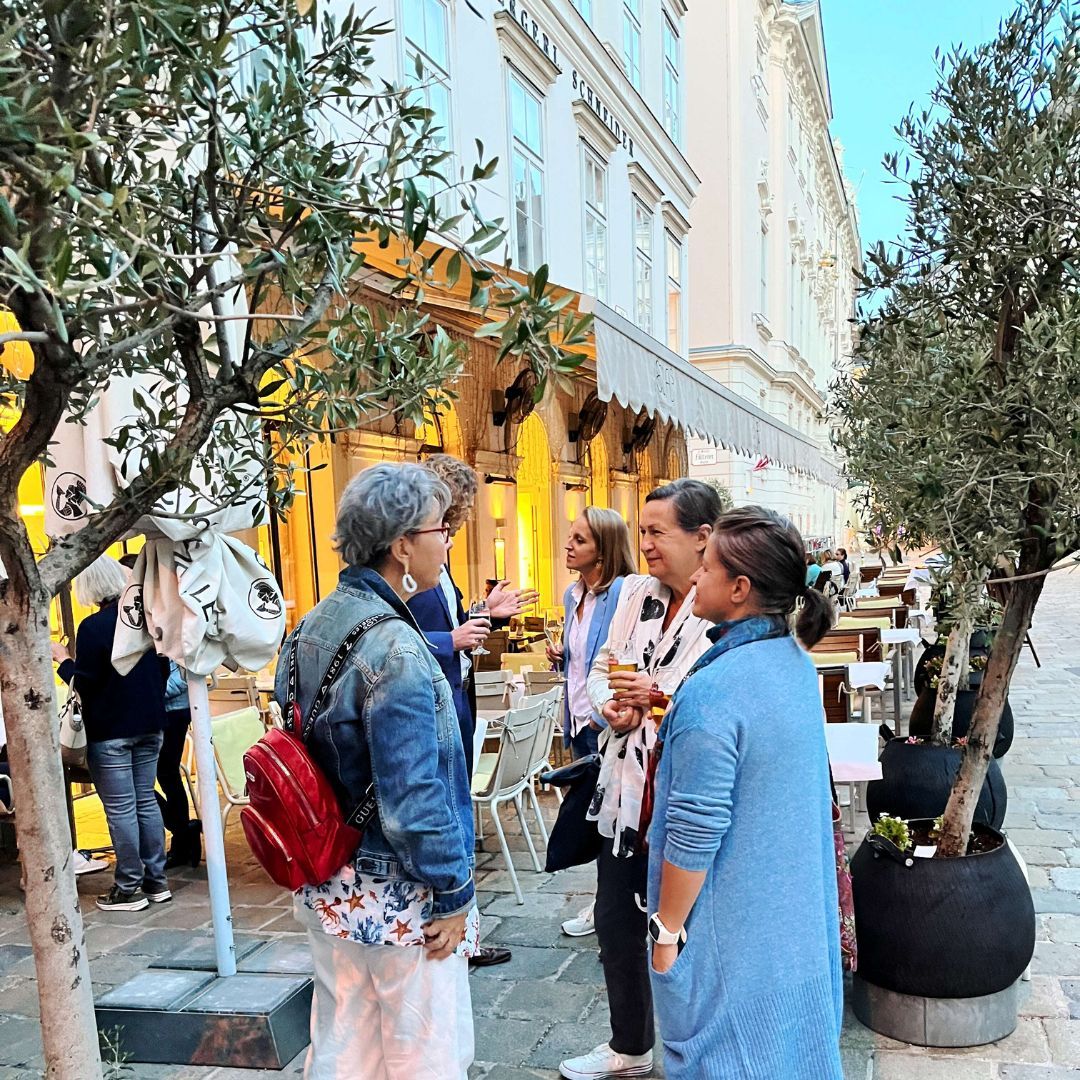 Auf dem Programm stand ein Spaziergang durch die geheimnisvollen Innenhöfe der Stadt. Tour-Guide Alexandra führte in unbekannte Ecken und Gassen, die selbst Wiener*innen oft unbekannt sind. Der Abschluss im Restaurant Ellas bot nicht nur kulinarische Genüsse, sondern vor allem genügend Zeit für viele anregende Gespräche.