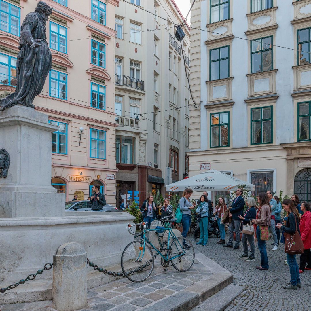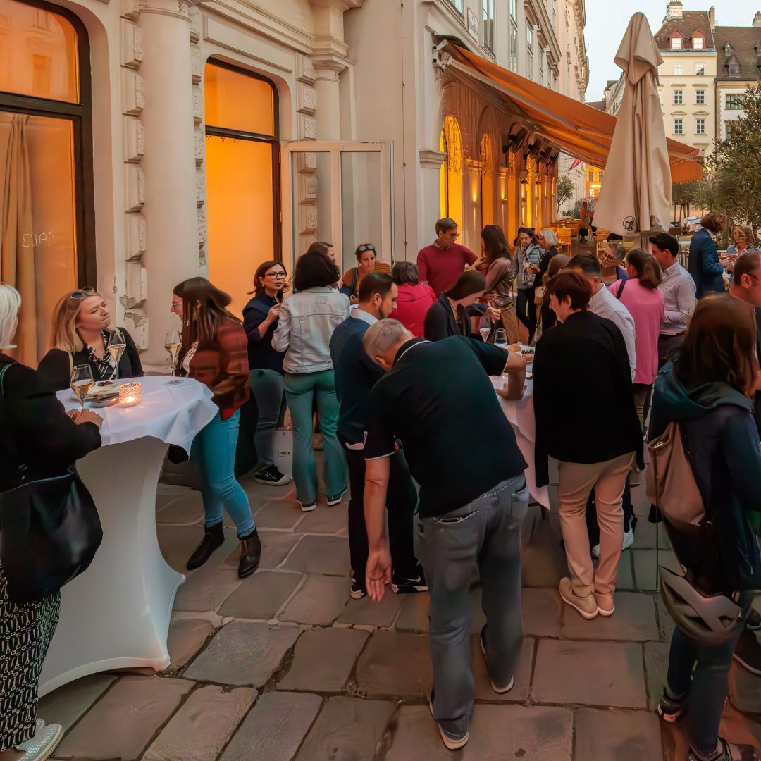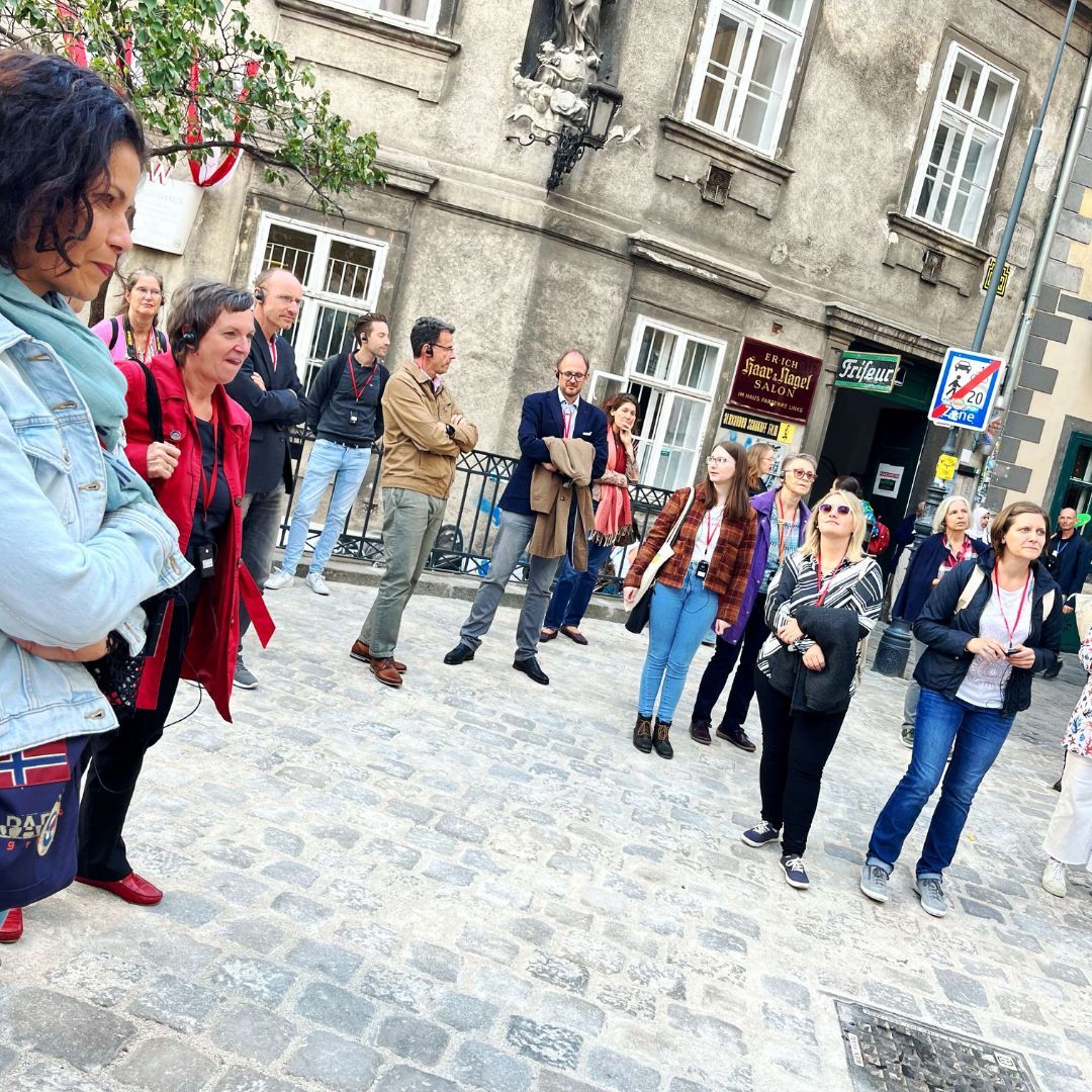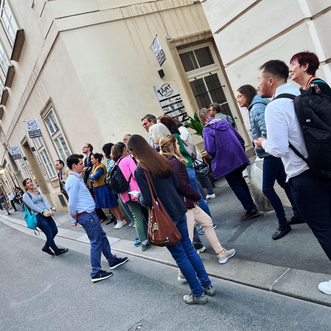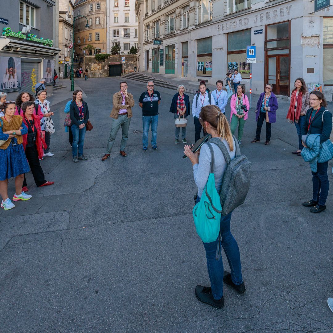 Auf dem Programm stand ein Spaziergang durch die geheimnisvollen Innenhöfe der Stadt. Tour-Guide Alexandra führte in unbekannte Ecken und Gassen, die selbst Wiener*innen oft unbekannt sind. Der Abschluss im Restaurant Ellas bot nicht nur kulinarische Genüsse, sondern vor allem genügend Zeit für viele anregende Gespräche.
