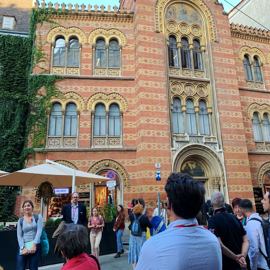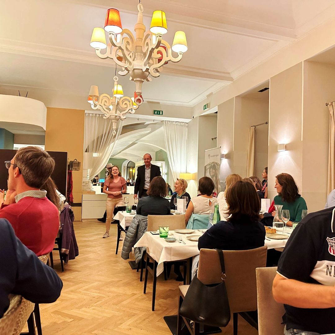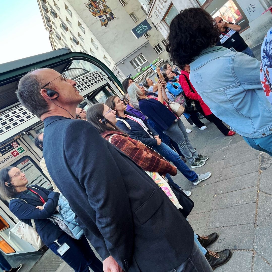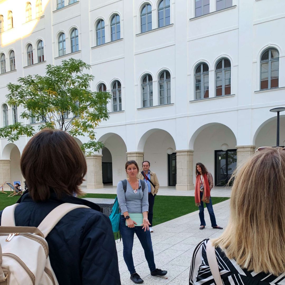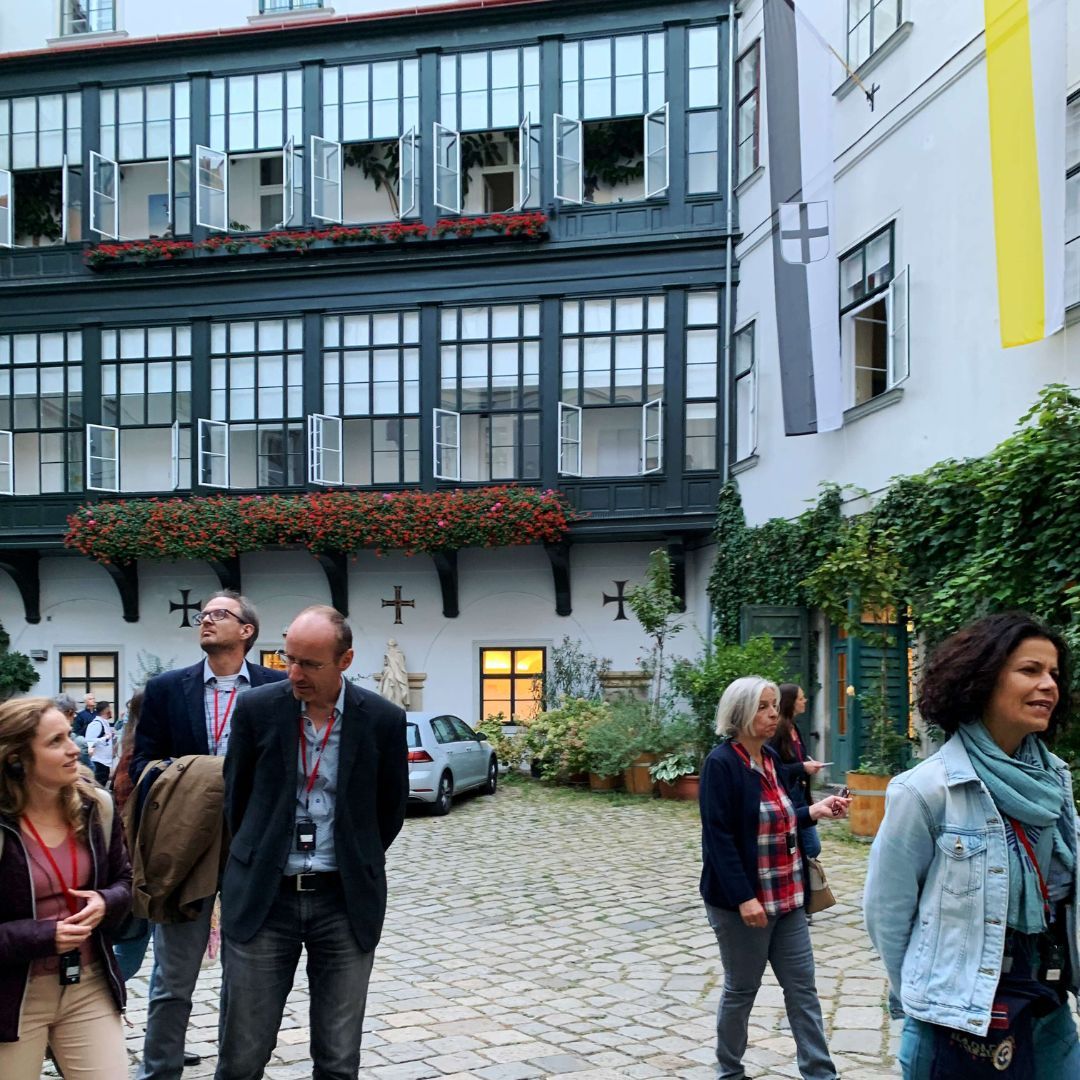 Auf dem Programm stand ein Spaziergang durch die geheimnisvollen Innenhöfe der Stadt. Tour-Guide Alexandra führte in unbekannte Ecken und Gassen, die selbst Wiener*innen oft unbekannt sind. Der Abschluss im Restaurant Ellas bot nicht nur kulinarische Genüsse, sondern vor allem genügend Zeit für viele anregende Gespräche.