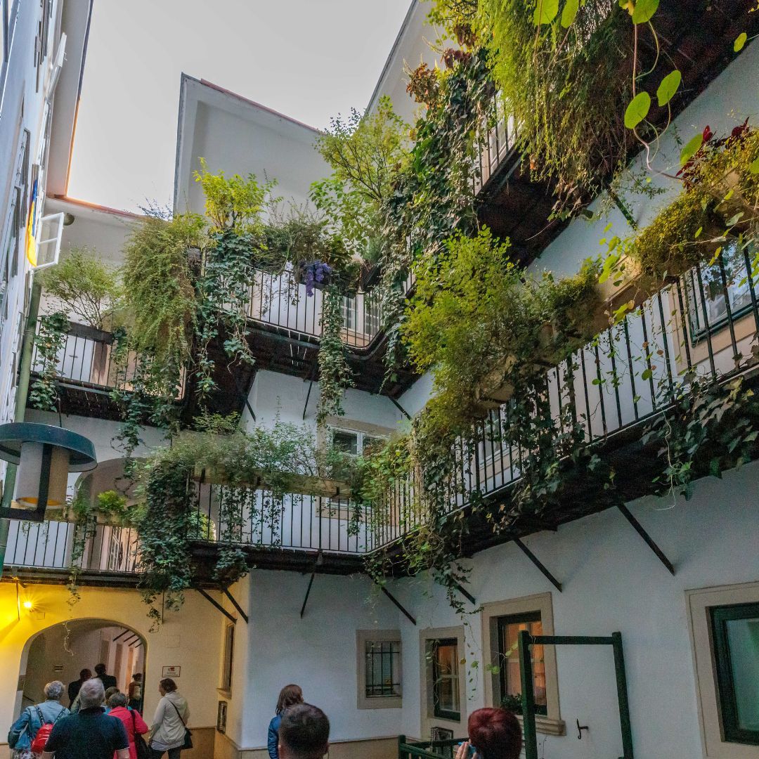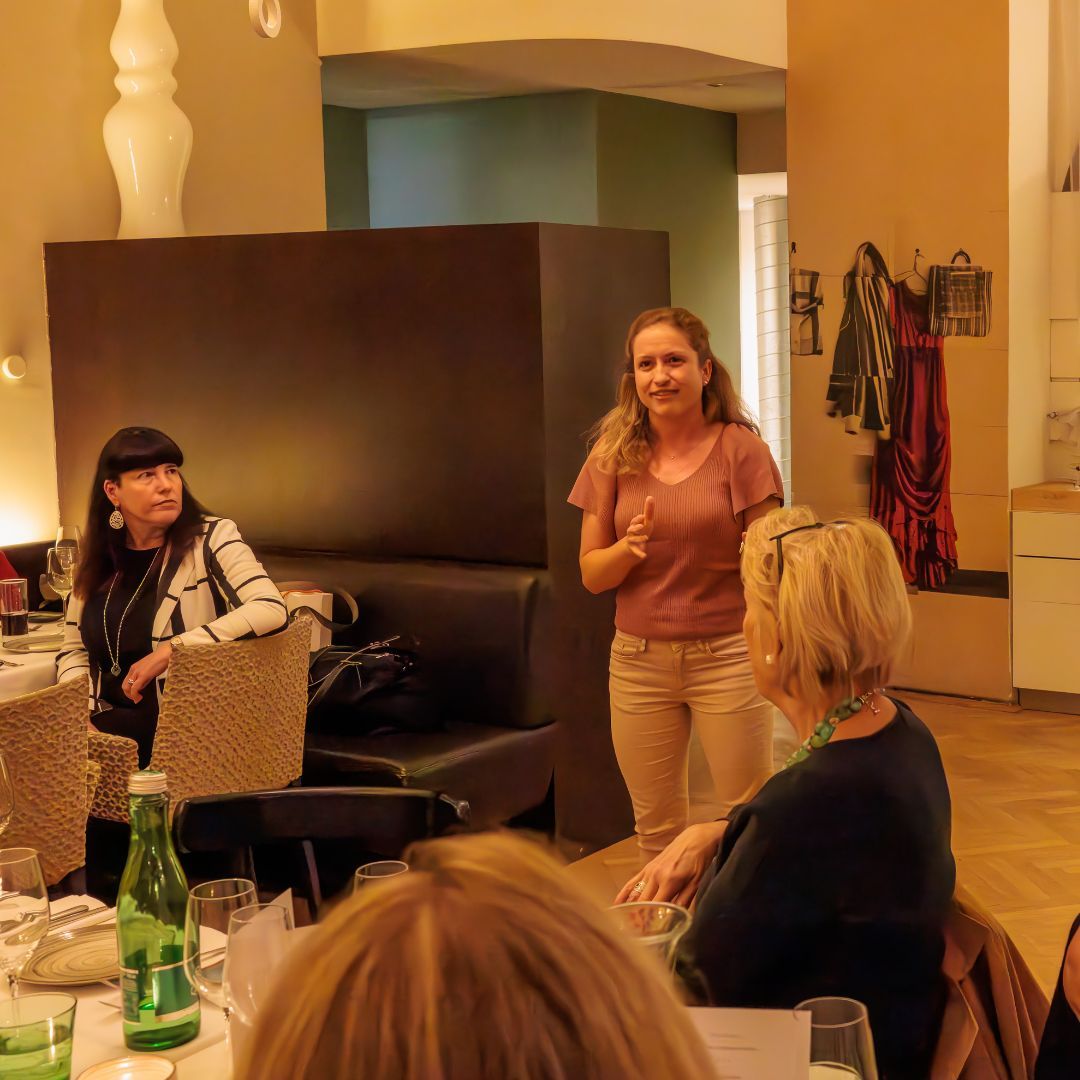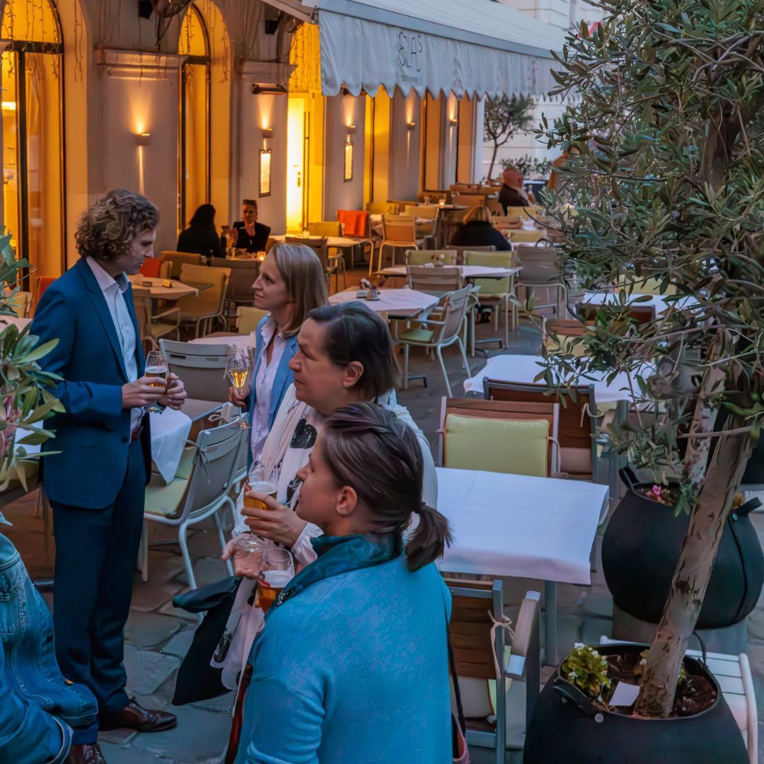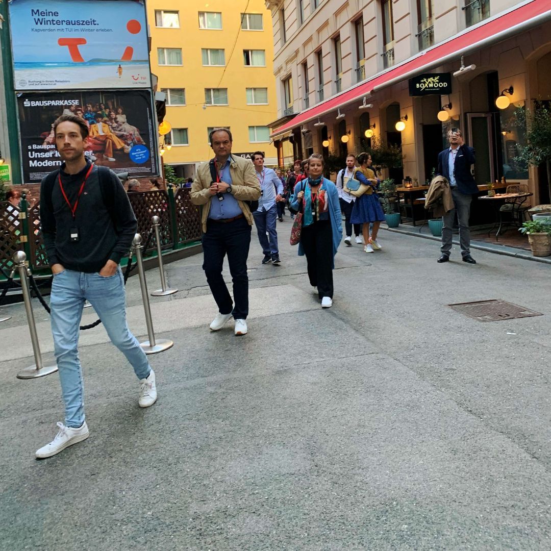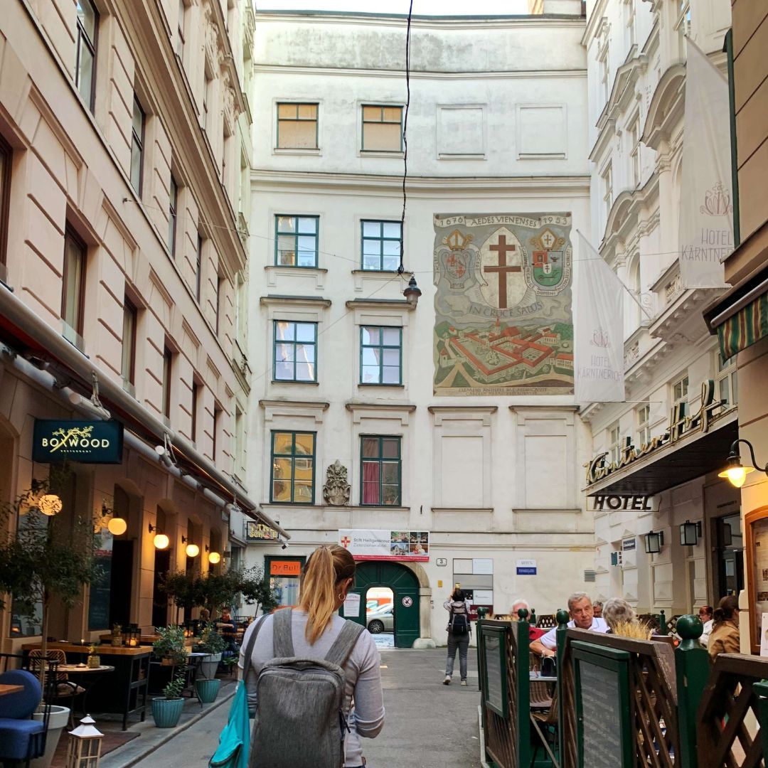 Auf dem Programm stand ein Spaziergang durch die geheimnisvollen Innenhöfe der Stadt. Tour-Guide Alexandra führte in unbekannte Ecken und Gassen, die selbst Wiener*innen oft unbekannt sind. Der Abschluss im Restaurant Ellas bot nicht nur kulinarische Genüsse, sondern vor allem genügend Zeit für viele anregende Gespräche.